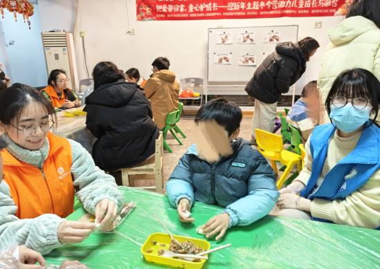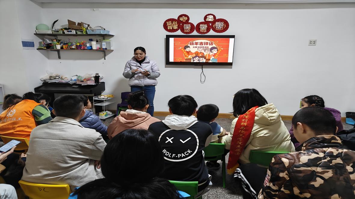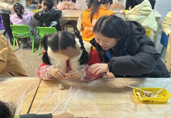 随着课程的推进,材化学院“小海志”志愿服务队参与的迎新年主题冬令营也接近尾声,1月20日,志愿者们赴福州市鼓楼区佳美幼儿园开展“新年吉祥话”“‘福’字解说课”“包饺子”等课程。