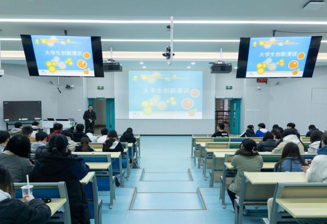 我院副院长陈毅挺教授为2024级学生开展“大学生创新漫谈”主题讲座,引导新生培养创新意识和科研能力,指导学生正确认识、理性参与、充分投入科研实践中。陈教授结合诺贝尔物理学奖获得者安德烈·海姆的科研经历强调学生应保持好奇心和求知欲,不断追求新知识与新技能,以更佳的姿态适应时代的快速发展。同时,陈教授还为学生讲解各类学科竞赛和大学生创新创业项目的报名流程与竞赛内容,鼓励新生们积极参与到实验中,改变学习和思维方式,培养发散性和批判性思维,拒绝惯性思维思考模式,并以当下考研形势为例,对新生未来发展寄予厚望。