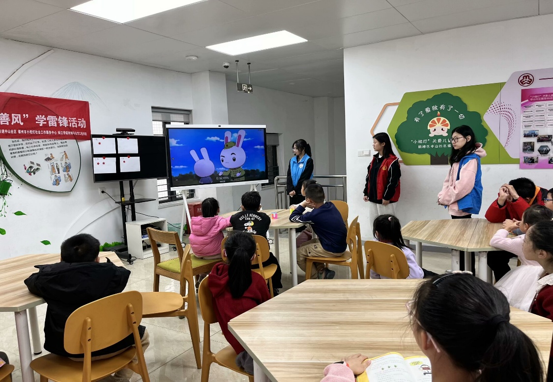 活动一开始,志愿者们通过播放趣味盎然的视频和展示栩栩如生的图片,声情并茂地为孩子们讲述了雷锋同志“出差一千里,好事做了一火车”的感人故事。孩子们全神贯注,沉浸在雷锋无私奉献的动人情节中,现场气氛既专注又温馨。