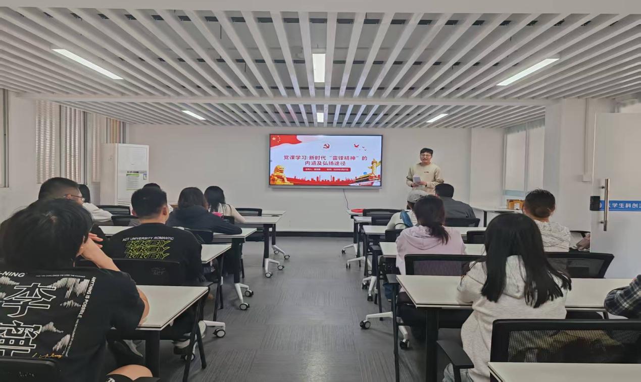 活动伊始,与会成员通过观看雷锋生平事迹短片,大家直观感受到雷锋平凡而又伟大的一生,深刻理解雷锋精神的内涵。观看结束后,支部书记温王鹏以“雷锋的钉子精神”为例,从敬业奉献精神、为人民服务的宗旨意识和理想信念等三个方面讲解了雷锋精神的时代内涵。在此基础上,他从思想政治教育、文化道德教育、典型模范树立等方面说明了新时代弘扬雷锋精神的途径,鼓励大家以雷锋为榜样,以民族复兴为己任,争做新时代优秀青年。
