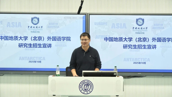 为帮助外国语学院学子清晰把握考研方向、合理规划职业发展,11月4日,中国地质大学(北京)外国语学院党委副书记格日勒受邀莅校开展研究生招生宣讲会。讲座由外国语学院副院长雷阿勇主持,2023级、2024级有意向学生参与聆听。